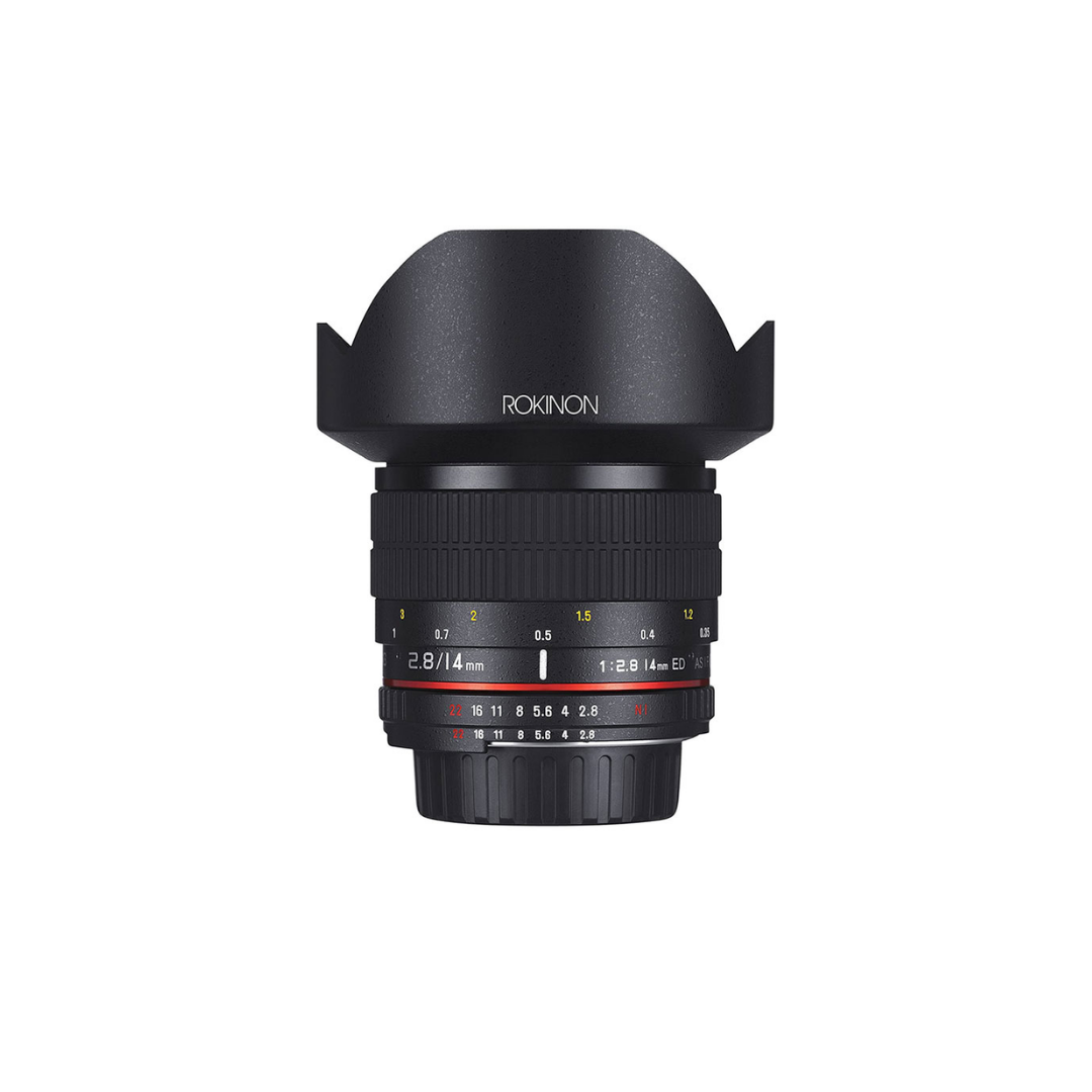 El Rokinon 14mm f/2.8 es un lente gran angular manual ideal para fotografía de paisajes, arquitectura, interiores, astrofotografía y video. Con un ángulo de visión extremadamente amplio y mínima distorsión para su rango, este lente ofrece excelente nitidez y rendimiento óptico a un precio accesible. Es una opción popular entre fotógrafos que desean un ultra gran angular luminoso con montura Canon EF.